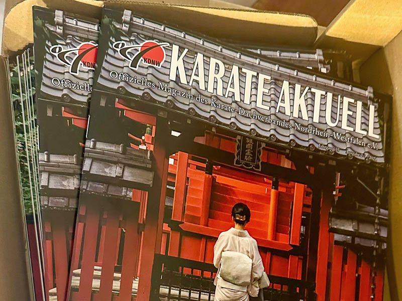 Das Paket mit den aktuellen, druckfrischen Zeitschriften vom Karate-Dachverband Nordrhein-Westfalen ist angekommen. Die Zeitschriften werden beim Training verteilt.