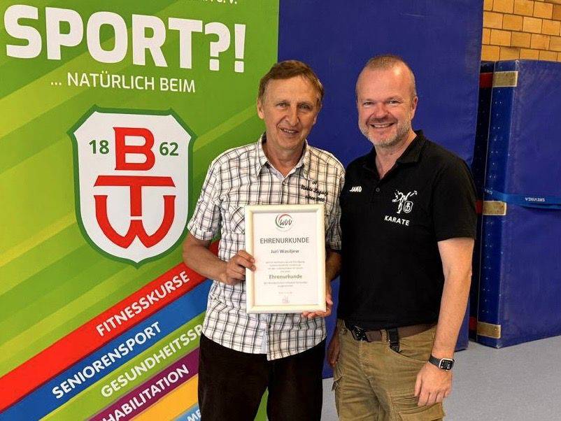 Alexander Kröger von der BTW-Karateabteilung wurde für seine 30-jährige Tätigkeit als Karate-Abteilungsleiter – seit 1995 – sowie als langjähriger Karatetrainer geehrt. Er ist auch Gründungsmitglied der Abteilung (1989) und übernahm damals als 19-Jähriger das Amt des stellvertretenden Abteilungsleiters.