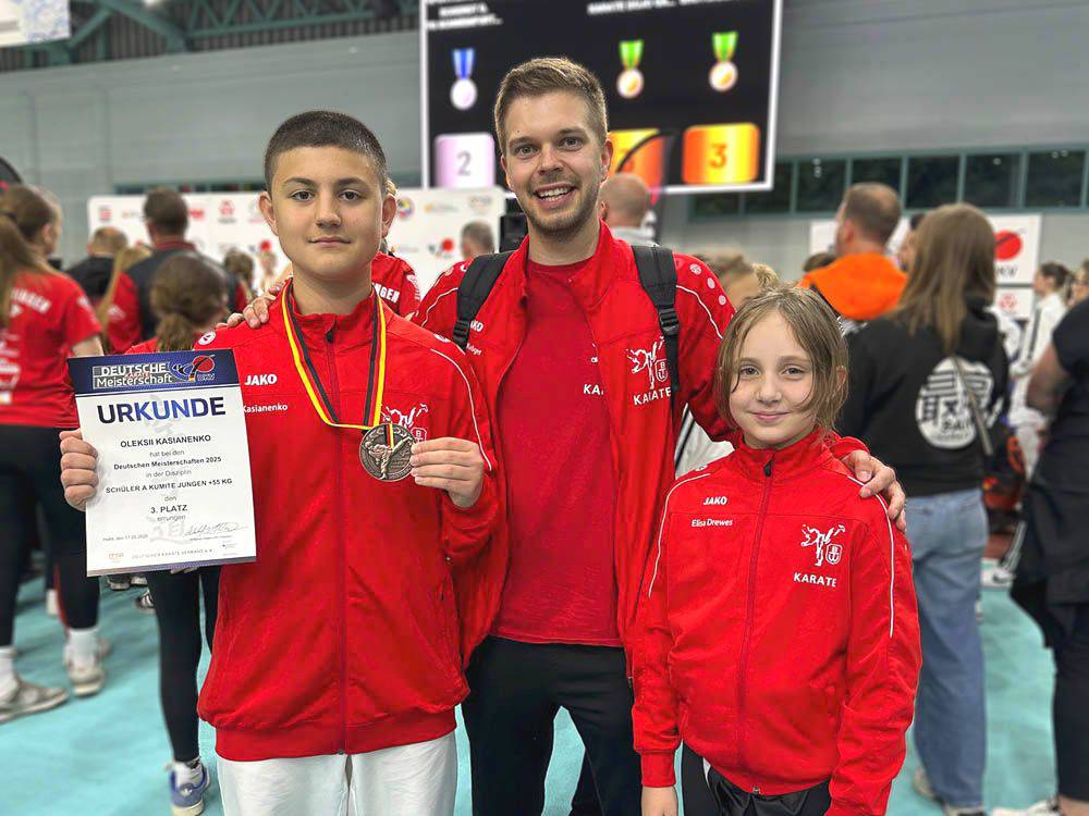 Gold: Oleksii Kasianenko, U14 m Kumite +49 kg. Silber: U16 w Kumite Team mit Julina Regier Olenburger. 3 x Bronze: Leon Hilgenberg, U16 m Kumite -57 kg | U16 m Kumite Team mit Leon und Yuxuan Wang | U14 m Kumite Team mit Oleksii und Danylo Tymoshyk. Platz 5: Mylana Kasianenko, U12 w Kumite +36 kg. Platz 7, Yuxuan Wang, U16 m Kumite -57 kg. Außerdem kämpften: Elisa Drewes und Suttilak „Maya“ Pigulla.