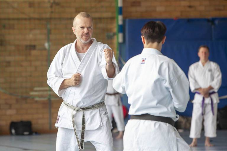 Fotos vom Lehrgang am 5. April 2025 beim BTW Bünde mit Karate, Selbstverteidigung und Selbstbehauptung. Für Kinder, Jugendliche & Erwachsene - mit Ulrike Maaß und Alexander Kröger.