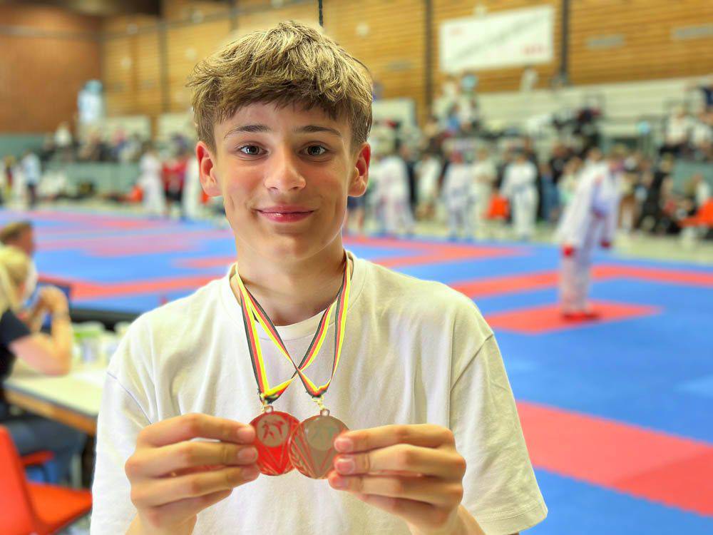 Bronze für Oleksii Kasianenko im Kumite (Zweikampf), U14, +55 kg bei der Deutschen Meisterschaft Schüler am 17. Mai in Halle an der Saale.